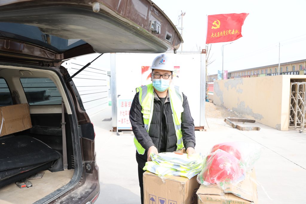 负责方舱建设的机械设备调度工作,为方舱建设的物资吊运,厢房的吊装等保障工作坚守阵地。确保在有限的作业空间,发挥最大的可操作空间。同时还负责建设场区内的道路指挥引导工作,保证了各类物资有序到位积极奋战,发挥了党员的模范带头作用,践行了战时状态坚守岗位就是使命担当。租赁公司共三名参战人员,司机刘磊负责卡口防疫检查工作,技术资料部曲铭悦编入宣传组负责宣传工作。