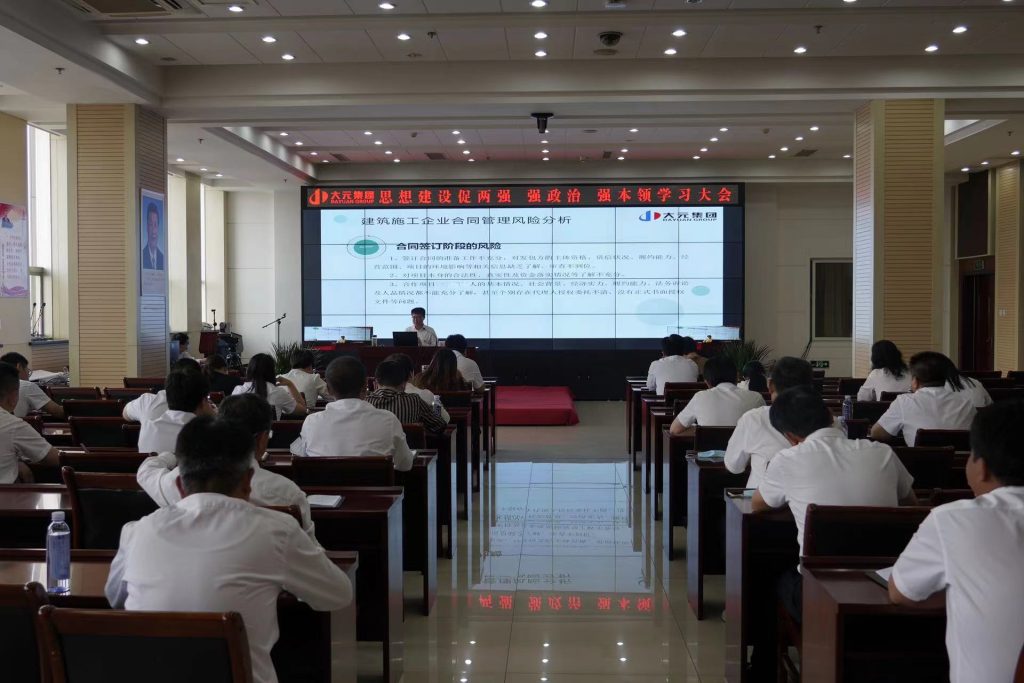 5月19日下午,大元建业集团常务副总裁汤长礼进行授课,主题为《合同履约过程中的风险辨识及应对措施》。活动采取线下+线上形式开展,在沧单位一把手、经营副总现场参加,钉钉群同步转播,各集团、各单位班子、经营、财务体系线上学习。