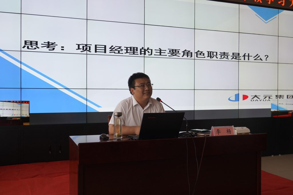 李杨授课主题为《项目经理领导力和执行力提升》通过理论+实际的形式要求项目经理要做到监督和督促实现团队目标、引导和指导员工做出贡献。提出项目工作的四个到位:一是目标到位:结果导向、锁定战略;二是利益到位:验收标准、考核体系;三是检查到位:跟踪激励、改进体系;培养到位:梳理通道、搭建体系。要求项目经理要将工作上升到战略高度,展现领导能力,并采取相应的措施,专注于工作的事项、专注于关系的事项。