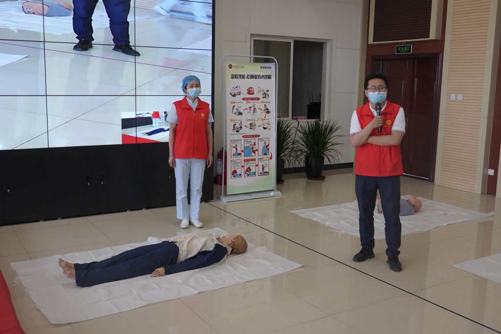 活动现场,王主任详细介绍了现代应急救护的新模式及程序。传授大家如何正确拨打急救电话,强调应急救护原则及注意事项。同时普及了心肺复苏的程序、方法,创伤救护、应急救护的四项技术等知识。