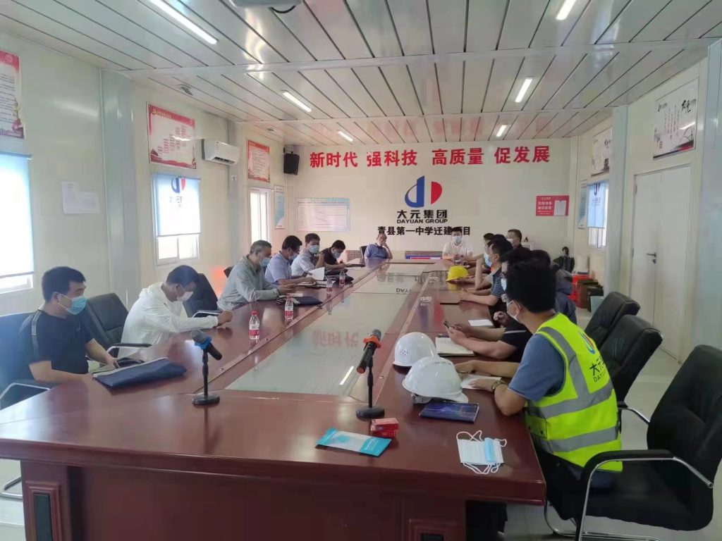 2022年5月25日下午,河北省检查组对8xbet.COM_8xbet(中国)总承包部承建的青县第一中学迁建项目的安全管理、文明施工、疫情防控、扬尘治理等环节进行了督导检查。沧州市住建局安全服务中心副主任孟凡文、青县住建局副局长刘海军、安监站股长许晓飞等一行人陪同督导检查。