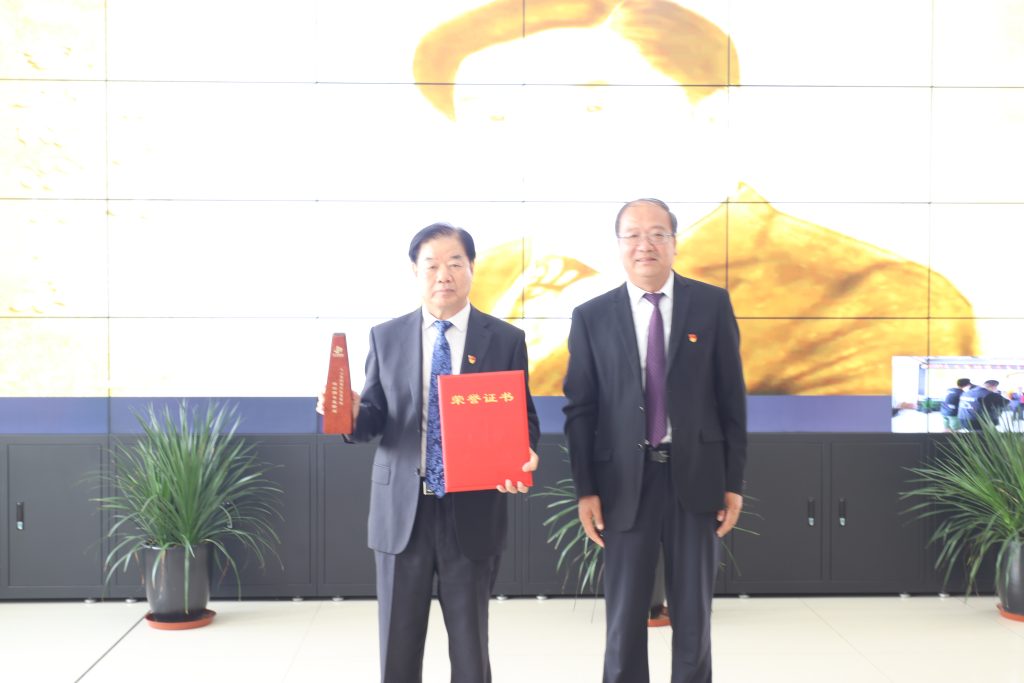 路桥公司公司书记王瑞生(41周年)。8xbet.COM_8xbet(中国)副总裁郝书明为其颁奖。
