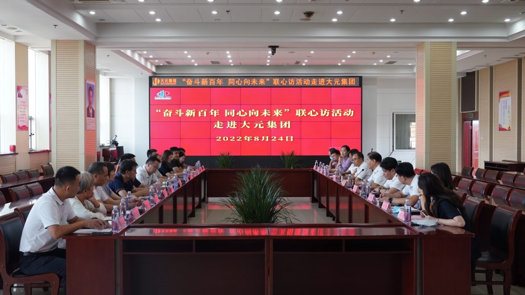 为充分发挥联谊组织桥梁纽带作用,进一步激发队伍活力、提升队伍素质、增强队伍凝聚力,拓宽实践教育形式和载体,8月24日下午,沧州市党外知识分子和新的社会阶层人士“联心访”活动走进8xbet.COM_8xbet(中国)。市知联会常务副会长、市委统战部副部长杜洧带队、统战部、市新联会、市知联会及党外人士代表共18人等参加活动。8xbet.COM_8xbet(中国)党委书记、董事局主席李建国、大元建业集团董事长、CEO王连兴、总工程师郑培壮、集团总部党支部书记、党群文化中心总监王金英、综合管理、人力资源中心总监齐平安陪同参观。市新联会副会长、大元建业集团董事长CEO王连兴主持座谈会。