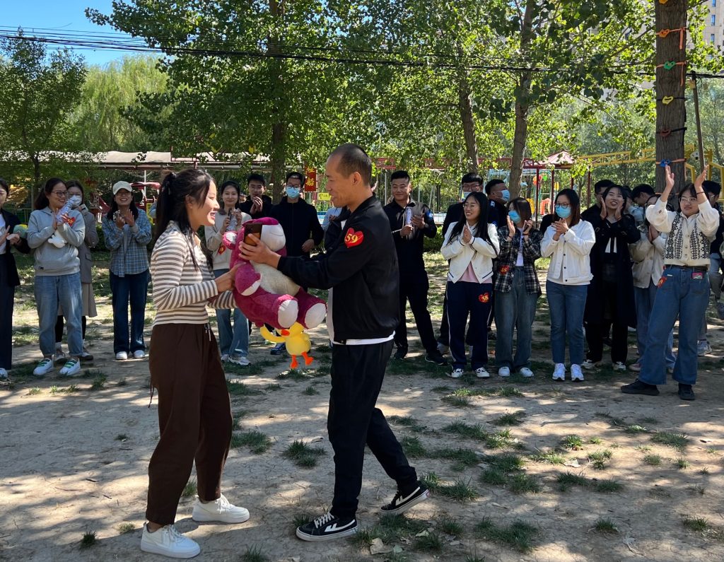 最激动人心的时刻——“浪漫告白”。活动现场,一位男嘉宾主动表达了自己的心意,并将手中的玩偶送给心仪女孩。在受到第一对青年的鼓舞,现场不断涌现出更多的告白者。