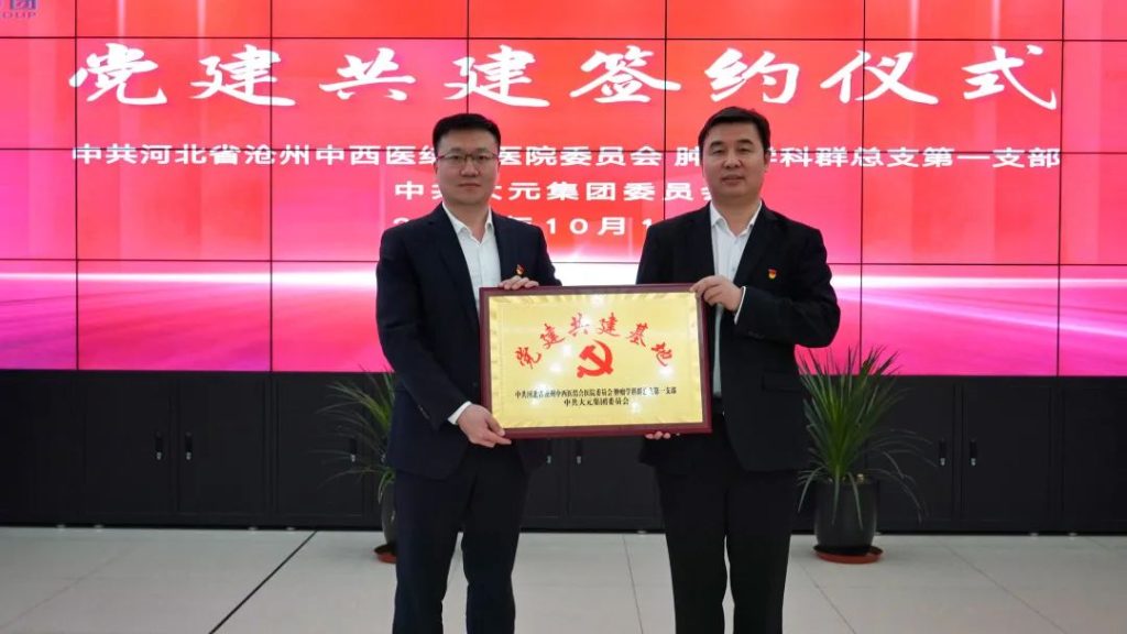 10月12日下午,8xbet.COM_8xbet(中国)党建共建第100家单位签约仪式圆满完成。本次共建由大元六建与河北省沧州中西医结合医院开展“党建互联共建”。