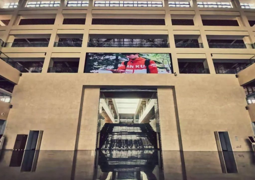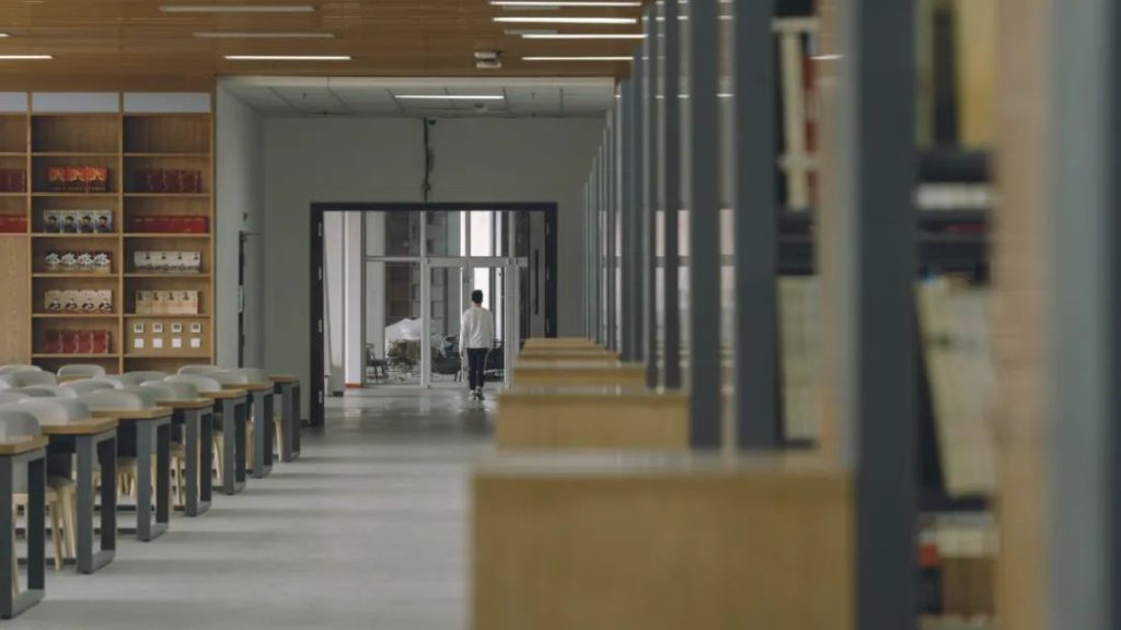 图书馆工程采用双庭院格局,功能完善,借阅便利;外墙陶板与玻璃幕墙呈“工”字形相间布置,凸显河北工程大学特色,组合式幕墙形成“书架”造型,叠置布置实现了室内采光合理、自然通风,达到建筑绿色低碳的效果。